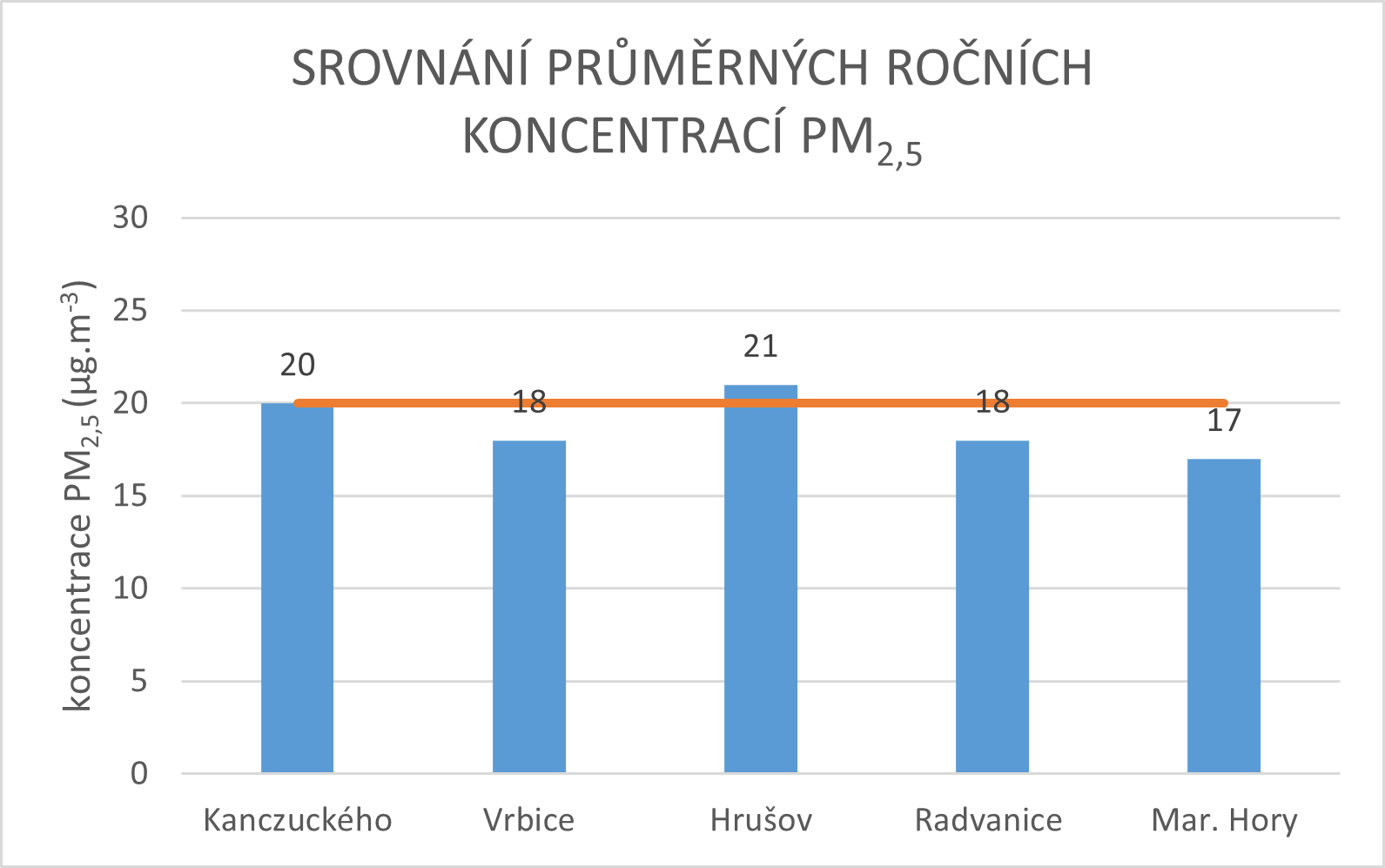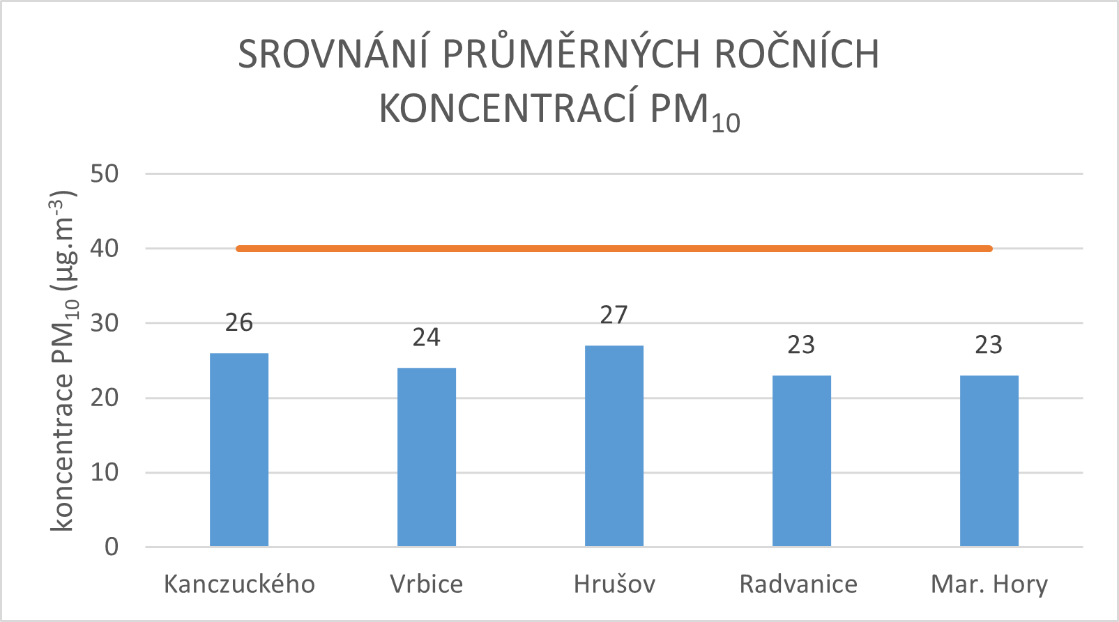 Roční naměřené hodnoty byly jednak porovnávány s platnými imisními limity a zároveň souběžně byla tato data porovnávána také s výsledky dosaženými na ostravských měřicích stanicích, které jsou provozovány v Radvanicích, Mariánských Horách a Hrušově. Sledují se koncentrace polétavého prachu velikosti PM10, PM2,5, oxidy dusíku (NO/NO2/NOx), oxidu uhelnatého (CO), oxidu siřičitého (SO2), těkavých organických látek (TOL) (hlavního zástupce benzenu) a polycyklických aromatických uhlovodíků (PAU) včetně benzo[a]pyrenu (BaP).